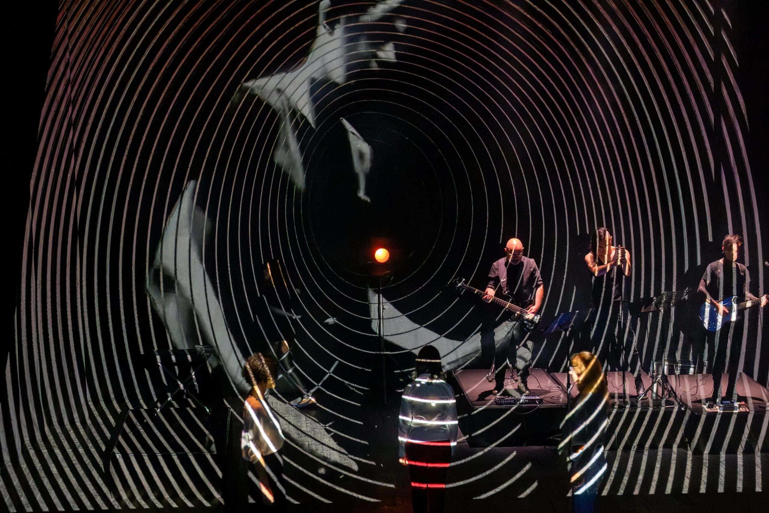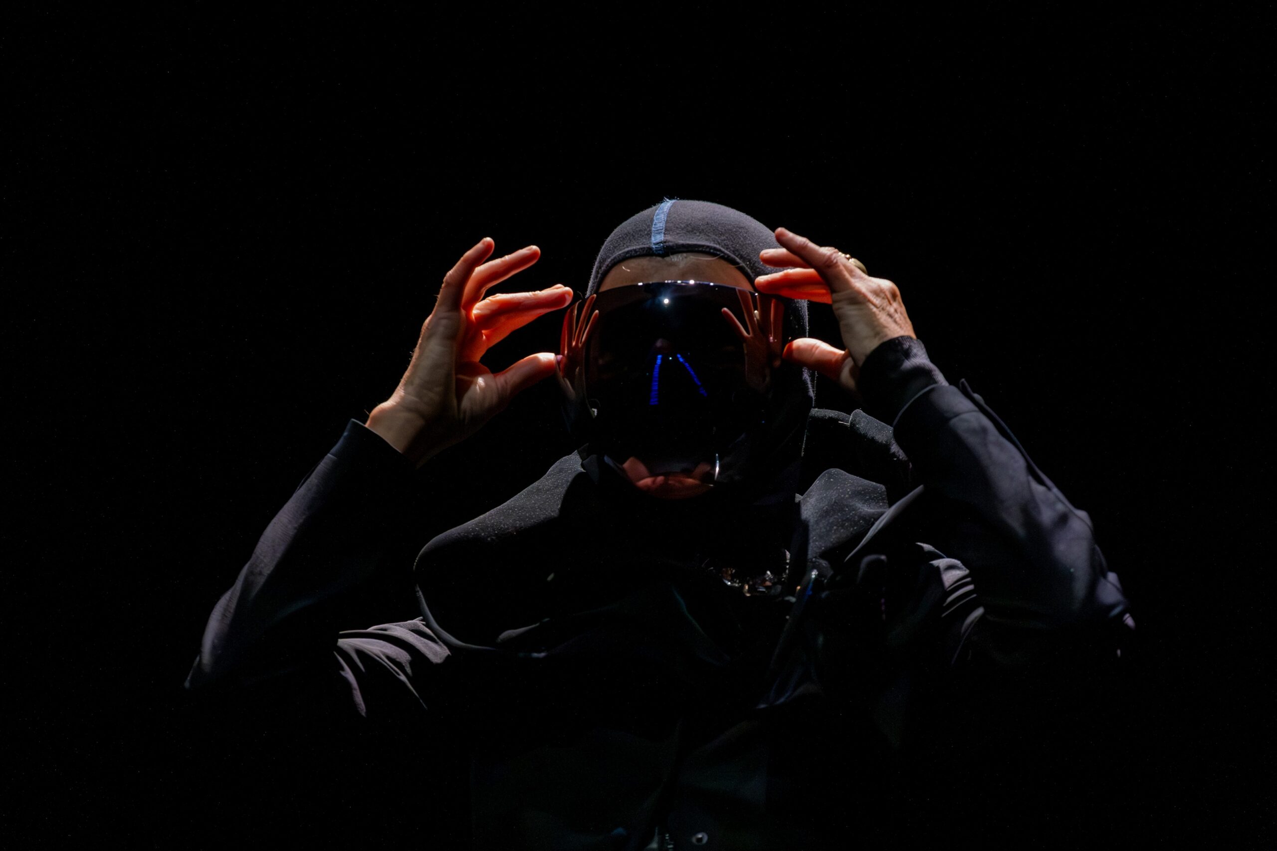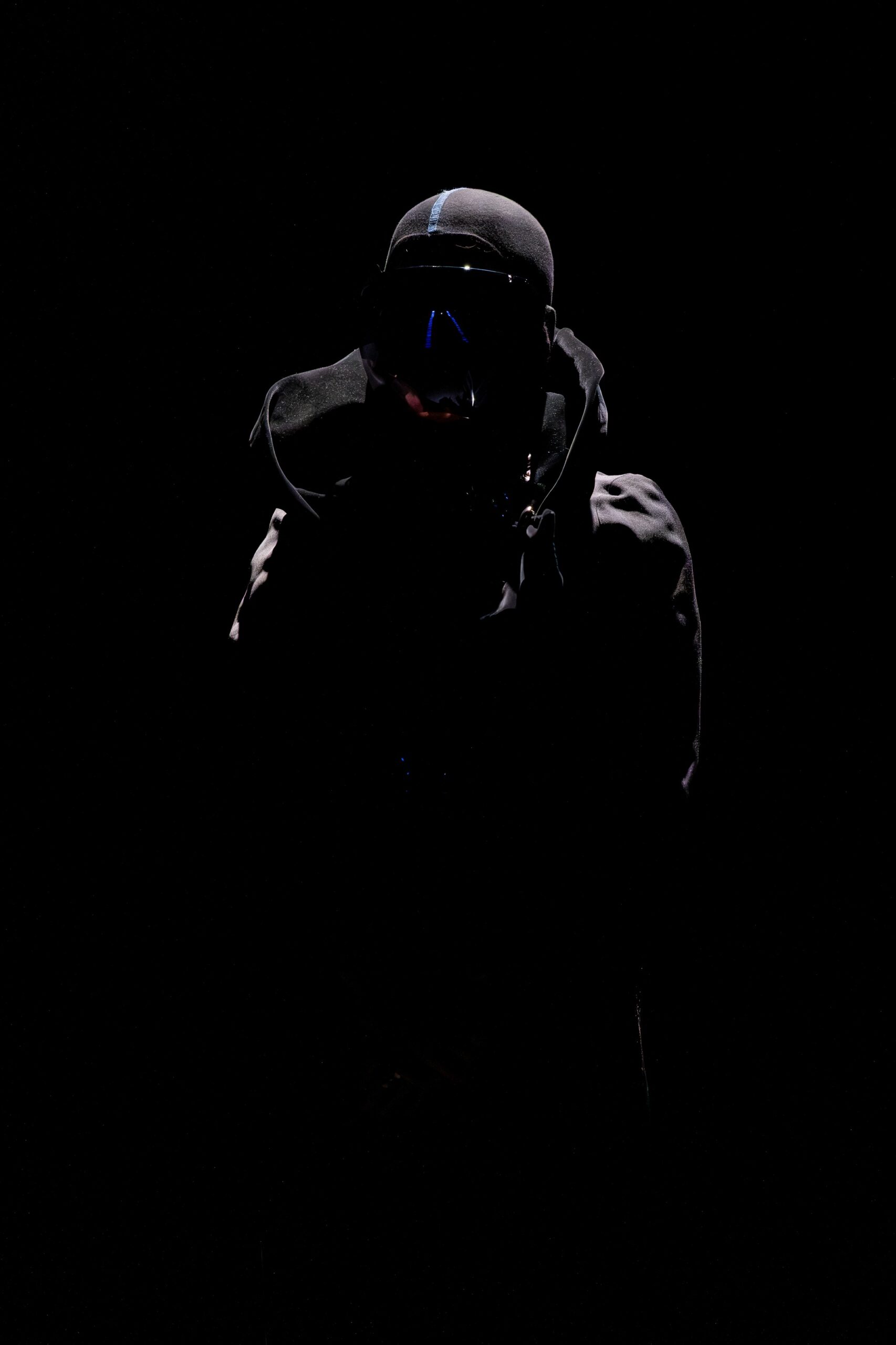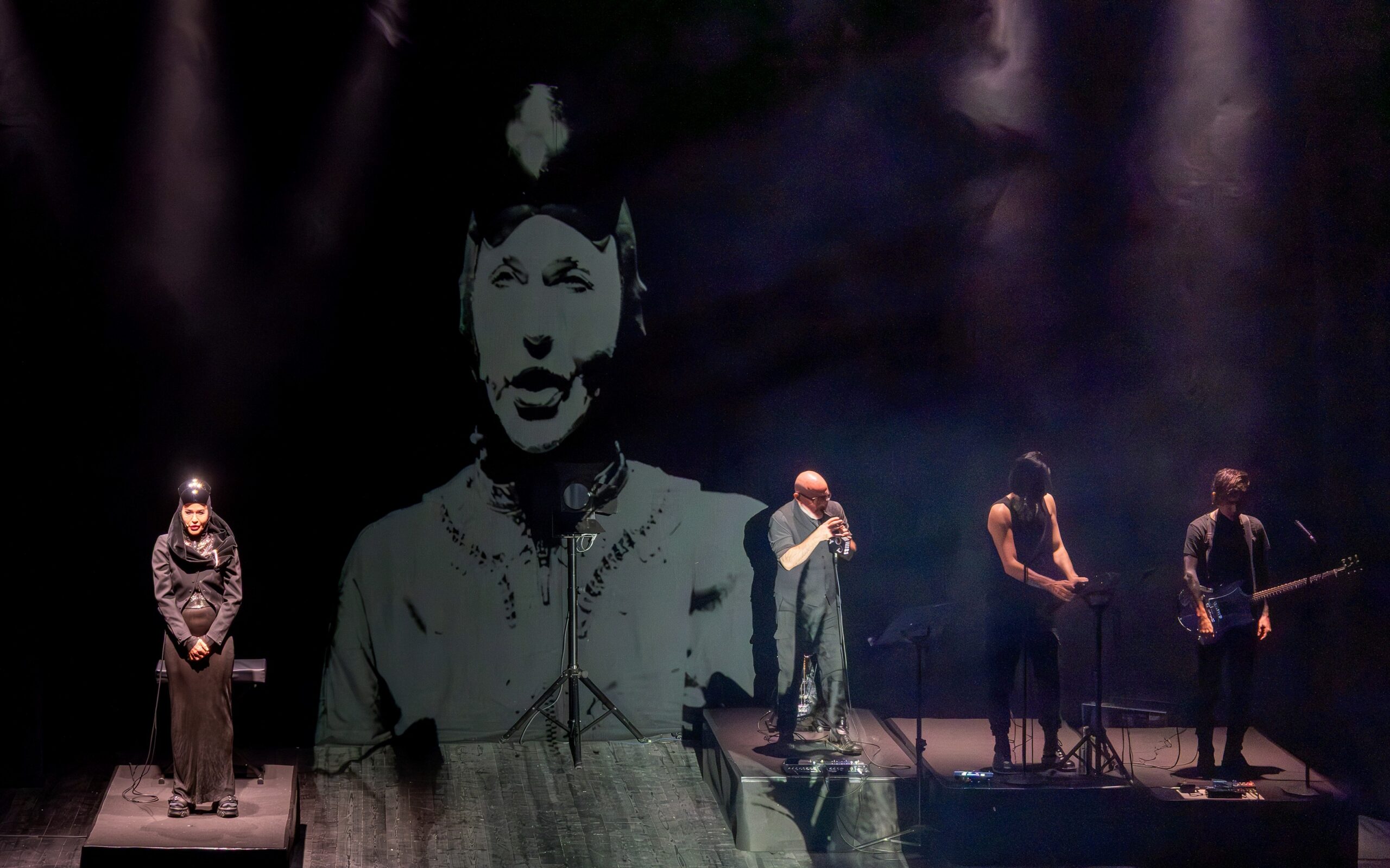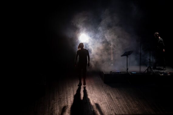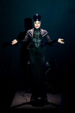 In una scena rarefatta e misteriosa, ideata da Davide Sacco, l’iconica Eva Robin’s, in costante relazione con la musica darkwave de La Mano Sinistra, racconta, grazie alla forza del suo personale portato e mettendo in gioco il proprio corpo politico, una storia che non può lasciare indifferenti, mentre crude immagini di realtà affiorano nell’aria, violente quanto eteree, per connettere le parole di questo potente racconto di Ursula K. Le Guin con il quotidiano dei nostri giorni e le sue macroscopiche ingiustizie planetarie oramai divenute abitudine.